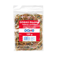 Gomas fabricadas en látex de gran resistencia y elasticidad. Bolsa de 100 gramos. Gomas surtidas en colores, tamaños y grosores.