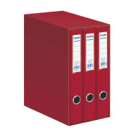 Dohe Oficolor Modulo de 3 Archivadores con Rado Características: -Módulo de tres archivadores tamaño folio lomo estrecho. -Cartón forrado con polipropileno. -Cantoneras metálicas, ollao, rado de máxima calidad. Especificaciones: -Cantidad: 3 -Formato: Folio -Anillas: 2 anillas de 25 mm -Tamaño Archivador: (290 x 355 x 190 mm) -Color: Rojo