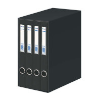 Dohe Oficolor Modulo de 4 Archivadores con Rado Características: -Módulo de cuatro archivadores tamaño folio lomo estrecho. -Cartón forrado con polipropileno. -Cantoneras metálicas, ollao, rado de máxima calidad. Especificaciones: -Cantidad: 4 -Formato: Folio -Anillas: 2 anillas de 25 mm -Tamaño Archivador: (290 x 355 x 190 mm) -Color: Negro