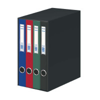 Dohe Oficolor Modulo de 4 Archivadores con Rado Características: -Módulo de cuatro archivadores tamaño folio lomo estrecho. -Cartón forrado con polipropileno. -Cantoneras metálicas, ollao, rado de máxima calidad. Especificaciones: -Cantidad: 4 -Formato: Folio -Anillas: 2 anillas de 25 mm -Tamaño Archivador: (290 x 355 x 190 mm) -Colores: Negro, Azul, Rojo y Verde