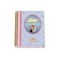 Cuaderno espiral A5 tapa dura 162 x 210mm. Cubierta en cartón forrado con papel impreso a todo color y plastificado mate. Guardas impresas a todo color. Espiral metálico color cobre. Interior de 100 hojas, papel offset de 90 g/ m2 microperforadas con 2 taladros y cuadrícula de 5mm con banda de color. Con Certificado FSC Mixto. Especificaciones: -Tamaño: A5 -Capacidad: 100 hojas 90gr -Tipo: Hojas microperforadas con 2 taladros y cuadrícula de 5mm -Diseño: Santoro Poppi Loves Messenger -Medidas del cuaderno: 162 x 210mm