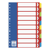 Separadores para archivadores y carpetas de anillas. Fabricados en cartulina de 180 gr con multitaladro de 16 perforaciones. Se sirven en bolsa autoadhesiva individual.