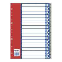 Separadores para archivadores y carpetas de anillas. Caracteristicas: -Tamaño: A4 -Fabricados en polipropileno de 120 micras con multitaladro de 16 perforaciones. -Se sirven en bolsa autoadhesiva individual.