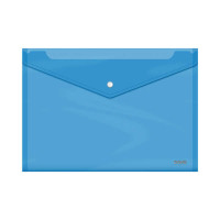 Sobre tamaño folio plus apaisado, con apertura superior y cierre broche automático. Fabricado en polipropileno cristal de 150 micras. Características: -Color: Azul Transparente -Para formato: Folio -Material: Polipropileno Cristal
