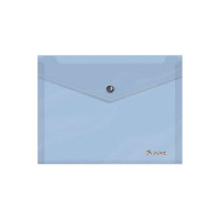 Sobre tamaño A-5 apaisado, con apertura superior y cierre broche automático. Características: -Fabricado en polipropileno de 150 micras. -Tamaño: A5 apaisado. -Color: Azul