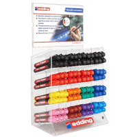 Edding 300 marcador permanente, el comodín polifacético. Si estás buscando una solución versátil para poder organizarte mejor las tareas domésticas del día a día, no te lo pienses más. Tanto si planeas rotular carpetas, fiambreras o botellas de cristal, el edding 300 marcador permanente va bien sobre casi cualquier material. Además, la punta redonda permite distribuir la tinta de manera uniforme. El práctico clip evita que el rotulador ruede y permite fijarlo a ropa y otros objetos. Este edding duradero, a prueba de borrones y resistente al desgaste está disponible en una 10 colores, y puede utilizarse por igual sobre plástico, madera, metal, vidrio o cartón. Rellenable en los colores negro, rojo, azul y verde con la tinta de recarga edding MTK 25. Tinta casi inodora y sin adición de tolueno o xileno Es el asistente idóneo para tus tareas diarias. Características: -Forma de la Punta: punta redonda -Grosor de trazo: 1.5 - 3 mm -Permanente -Tinta casi inodora -Resistente al Agua -Resistente al Desgaste -Resistencia al Roce -Rellenable -Capuchón con clip, puede reposicionarse. -Fluorescente -Secado rápido -Expositor de 96uds. -Colores: Surtidos