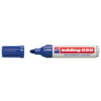 edding 550 marcador permanente: siempre a mano. Si está buscando un marcador de alta calidad para las tareas del día a día, como etiquetar cajas de cartón o herramientas, el marcador permanente edding 550 debería ser su primera opción. Su tinta duradera y resistente al roce permite rotular de forma permanente multitud de materiales. Su punta redonda garantiza un flujo uniforme y suave de la tinta. El marcador permanente edding 550 se ofrece en un resistente y extraordinario cuerpo de aluminio y, como es corto, cabrá fácilmente en su bolsillo. Ni que decir tiene que este particular edding también es resistente al agua y a la luz, casi inodoro y de secado rápido. Puede aplicarse sobre diversos materiales, como la madera, el metal, el vidrio o el cartón, por nombrar algunos. Artículo disponible en los colores negro, rojo, azul y verde. El producto es rellenable con la tinta de recarga edding T 25, T 100 y T 1000. Contamos con puntas de recambio adecuadas (edding 550 puntas de recambio). Tinta casi inodora y sin adición de tolueno o xileno Características: -Forma de la Punta: punta redonda. -Grosor de trazo: 3 - 4 mm -Puntas de Recambio disponible. -Permanente -Tinta casi inodora. -Resistente al Agua. -Resistente al Desgaste. -Resistencia al Roce. -Fluorescente -Secado rápido -Rellenable -Capuchón que puede reposicionarse. -Antirrodadura incluida. -Práctico formato de bolsillo.