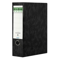 El Elba Archivador Palanca está fabricado en cartón compacto resistente de color negro. Tiene capacidad para folios de tamaño folio y su lomo mide 80mm. Es un archivador duradero y de alta calidad para organizar y almacenar documentos de forma segura.