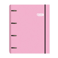 Enri Carpeta de Anillas A4+ con Recambio de 100 Hojas 80gr Cuadricula 5x5 con Bandas de Color - 4 Anillas 35mm - Tapa Extradura Brillante - Color Rosa