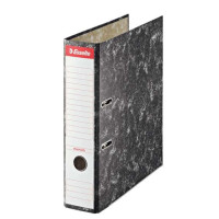Archivador de palanca forrado de papel jaspeado clásico y mecanismo estándar para uso diario. Características: -Mecanismo estándar. -Forrado de papel jaspeado en el exterior y en el interior. -Etiqueta impresa en el lomo para una fácil personalización. -Con rado en la tapa, orificio en el lomo y cantoneras metálicas para mayor comodidad y seguridad en el almacenamiento de documentos. -Capacidad para 500 hojas (80 g/m²). Especificaciones: -Color: Jasp. Negro -Tarjetero: Impreso en lomo -Para formato: A4 -Cantoneras: Si -Anchura lomo (mm): 75 -Rado: Si -Peso: 0,44