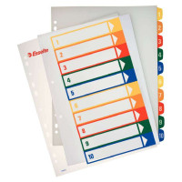 Para utilizarlos solo hay que imprimir una hoja estándar A4 con la ayuda de una plantilla y colocarla tras la página frontal. De esta manera es posible actualizarlo siempre que sea necesario. La plantilla puede descargarse en www.esselte.com/projectsystem. Permite que se vean las pestañas aunque el archivador contenga fundas. Características: -Tipo: 1 - 10 Multicolor -Material: PP rígido de 300 micras / portada 350 micras -Tamaño: A4 maxi