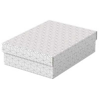 Cajas de almacenamiento de cartón elegantes y modernas con tapa extraíble ideales para empaquetar regalos o crear almacenamiento instantáneo en casa. Juego de tres cajas del mismo tamaño para usar individualmente, para guardar cosas en estantes o crear espacios de almacenamiento todas juntas, para mantener organizados y fáciles de encontrar artículos más pequeños como fotografías y documentos personales. ¡Añádele un poco de cinta y úsala para empaquetar un regalo! Una vez abierto, el destinatario puede reutilizarlo para almacenar artículos en el hogar, así que tienes 2 regalos en uno. Hecho de cartón corrugado resistente, 100% reciclado y 100% reciclable, certificado FSC. La superficie, que se limpia con un paño, tiene un acabado con un diseño geométrico de dos colores para agregar estilo a tu espacio de almacenamiento. Se suministra en paquete plano y es rápido y fácil de montar. Los lados se pliegan sobre sí mismos durante el montaje para proporcionar el doble de resistencia, asegurando que las cajas se mantengan fuertes y protejan el contenido. Caracteristicas: -Juego de tres cajas de almacenamiento de cartón medianas con un diseño geométrico moderno y elegante. -Ideal para regalos o para guardar elementos como papeleo, fotografías y otros accesorios. -Puede usarse solo o almacenado en estantes. -Úsalo para empaquetar un regalo y el destinatario puede reutilizarlo como almacenamiento en el hogar. -Tapa extraíble para ocultar el contenido y mantenerlo tapado. -Los colores neutros y el diseño complementarán cualquier decoración y permitirán que se pueda personalizar fácilmente para un regalo. -Viene empaquetado plano y es rápido y fácil de montar. -Los lados se pliegan sobre sí mismos durante el montaje para proporcionar el doble de resistencia. -La superficie se limpia con un paño. -Hecho de cartón resistente y duradero, 100% reciclado, 100% reciclable y con certificación FSC. -El embalaje es 100% reciclado, 100% reciclable y no contiene plástico. Especificaciones: -Color: Blanco con diseño geometrico -Material: Cartón robusto plastificado de polipropileno -Uso: Almacenamiento de fotos, notas, cartas, sobres y cualquier otra cosa. -Dimensiones: 265 x 100 x 360mm -Peso: 0,45kg