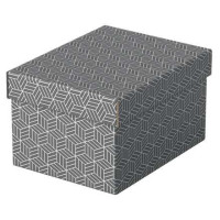 Cajas de almacenamiento de cartón elegantes y modernas con tapa extraíble ideales para empaquetar regalos o crear almacenamiento instantáneo en casa. Juego de tres cajas del mismo tamaño para usar individualmente, para guardar cosas en estantes o crear espacios de almacenamiento todas juntas, para mantener organizados y fáciles de encontrar artículos más pequeños como fotografías y documentos personales. ¡Añádele un poco de cinta y úsala para empaquetar un regalo! Una vez abierto, el destinatario puede reutilizarlo para almacenar artículos en el hogar, así que tienes 2 regalos en uno. Hecho de cartón corrugado resistente, 100% reciclado y 100% reciclable, certificado FSC. La superficie, que se limpia con un paño, tiene un acabado con un diseño geométrico de dos colores para agregar estilo a tu espacio de almacenamiento. Se suministra en paquete plano y es rápido y fácil de montar. Los lados se pliegan sobre sí mismos durante el montaje para proporcionar el doble de resistencia, asegurando que las cajas se mantengan fuertes y protejan el contenido. Caracteristicas: -Juego de tres cajas pequeñas de cartón con un diseño geométrico moderno y elegante. -Ideal para regalos o para guardar elementos como papeleo, fotografías y otros accesorios. -Puede usarse solo o almacenado en estantes. -Úsalo para empaquetar un regalo y el destinatario puede reutilizarlo como almacenamiento en el hogar. -Tapa extraíble para ocultar el contenido y mantenerlo tapado. -Los colores neutros y el diseño complementarán cualquier decoración y permitirán que se pueda personalizar fácilmente para un regalo. -Viene empaquetado plano y es rápido y fácil de montar. -Los lados se pliegan sobre sí mismos durante el montaje para proporcionar el doble de resistencia. -La superficie se limpia con un paño. -Hecho de cartón resistente y duradero, 100% reciclado, 100% reciclable y con certificación FSC. -El embalaje es 100% reciclado, 100% reciclable y no contiene plástico. Especificaciones: -Color: Gris con diseño geometrico -Material: Cartón robusto plastificado de polipropileno -Uso: Almacenamiento de fotos, notas, cartas, sobres y cualquier otra cosa. -Dimensiones: 200 x 150 x 255mm -Peso: 0,34kg