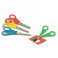 Tijeras escolares de acero inoxidable, empuñadura de plástico y punta roma, 13 cm. largo. Características: -Tijeras de 13 cm -Punta redonda -Acero inoxidable para garantizar un mejor funcionamiento