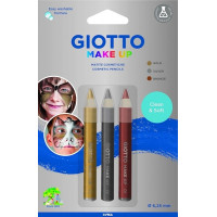 La gama Giotto Make Up ha actualizado su fórmula y formatos. Transforma y ponle mucho color a tu rostro con la gama de maquillaje Giotto Make Up. Tus aliados perfectos para los disfraces más creativos. Fórmula de muy fácil aplicación. El lápiz cosmético es grueso, con una mina de 6,25 mm de diámetro, adecuado para colorear áreas grandes, duradero y resistente para evitar roturas. Sin gluten, testado dermatológicamente, de fácil eliminación con agua tibia. Cada paquete contiene breves instrucciones de uso. Descubre toda la gama Giotto Make Up Características: -Cantidad: 3x 2gr -Se lava con agua -Dermatológicamente testado