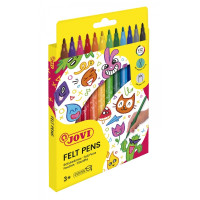 • Jovi Felt Pens Estuche de 12 Rotuladores - Amplia Variedad de Tonos - Tinta de Gran Fijacion - Punta de 3mm - Capuchon de Seguridad Ventilado - Grip Triangular Ergonomico - Color Surtido