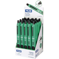 El Bolígrafo retráctil Milan Compact cuenta con una punta de 1 mm, con la que podrás escribir hasta 1.000 metros aproximadamente. Con tinta fabricada en Alemania y con un diseño original creado por el departamento de I+D de Milan. Características: -Longitud de escritura aproximada: 1.000 metros -Color de la tinta: Verde -Color del cuerpo : Verde/Negro -Tinta fabricada en: Alemania -Tamaño de la punta: 1 mm -Material: Plástico -Retráctil Especificaciones: -Expositor de 20 ud.