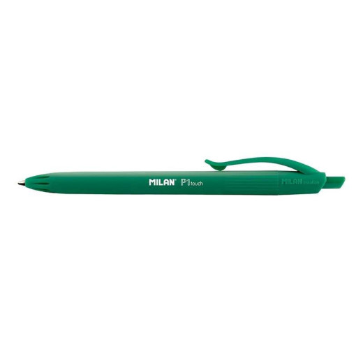 Bolígrafo P1 Touch, con el cuerpo del mismo color que la tinta. Diseño original creado por el departamento de I+D de MILAN. Características: -Longitud de escritura aproximada: 1.200 metros -Tamaño punta: 1 mm -Color de la tinta: Verde -Tinta fabricada en: Alemania -Tinta de aceite -Escritura suave -Ligero y resistente -Retráctil Especificaciones: -Caja de 25 ud.