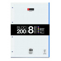 Miquel Rius Bloc8 Bloc Encolado Formato A4 Caracteristicas: -Tamaño A4 -Cuadricula 5x5 -200 hojas de 70gr con 4 taladros -La banda de las hojas esta pintada en 8 colores de 25 hojas cada una