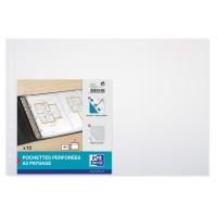 Las fundas multitaladro Oxford A3 apaisado están fabricadas en polipropileno estándar con acabado piel naranja y con un grosor de 90 micras. Son ideales para proteger y organizar documentos de tamaño A3 apaisado de forma segura y práctica.