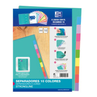 Los separadores Oxford Strongline A4 están diseñados con 10 posiciones de diferentes colores para una fácil identificación y organización de documentos. Cada separador cuenta con 4 taladros para una fácil inserción en carpetas de anillas. Están fabricados en cartulina de 200 gramos, lo que los hace resistentes y duraderos para un uso prolongado. Perfectos para organizar y clasificar documentos de manera eficiente.