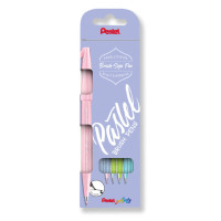Rotulador/pincel de caligrafía y lettering para principiantes. Conocido en las redes sociales como ?Pentel Touch Brush Pen?. Para crear letras, inscripciones e ilustraciones lettering modernas. La punta flexible del pincel permite un control total sobre el grosor y la forma de las líneas. Crea composiciones y lemas sorprendentes. Características: -Perfecto para usuarios principiantes -Para crear letras, inscripciones e ilustraciones modernas. -Punta de pincel flexible -Longitud de la punta: 5 mm -Grosor de la punta: 2,07 mm -Colores: Azul Grisaceo, Azul Claro, Verde Claro y Rosa -Pack Pastel de 4uds.