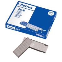 Grapas 26/6. Características: -Para grapar hasta 30 hojas (80 g/m²). -Cada caja contiene 1.000 grapas. -De calidad superior, recomendadas para grapadoras de cualquier marca. -Patilla de 6 mm de largo Especificaciones: -Tipo de Grapas: 26/6