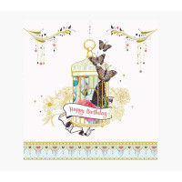 Tarjeta colección Arabesque. Características: -Temática, jaula de pájaros. -Tamaño: 16 cm x 16 cm. -Tarjeta tríptica sin envoltorio. -Incluido un sobre en color blanco. -Impresas en papel con Certificación FSC.