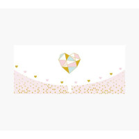 Tarjeta de regalo tipo sobre en formato horizontal. Características: -Para regalar de forma más elegante un cheque, unas entradas, un billete de avión o dinero, por ejemplo. -Temática, corazones. -Tamaño: 21,3 cm x 9,6 cm. -Embolsada individualmente en celofán. -Incluido un sobre en color blanco. -Impresas en papel con Certificación FSC.