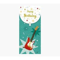 Tarjeta de regalo en formato vertical, para regalar con estilo un cheque, unas entradas, un billete de avión o dinero, por ejemplo. Características: -Temática, guitarra. -Tamaño: 9,6 cm x 21,3 cm. -Embolsada individualmente en celofán. -Incluido un sobre en color blanco. -Impresas en papel con Certificación FSC.