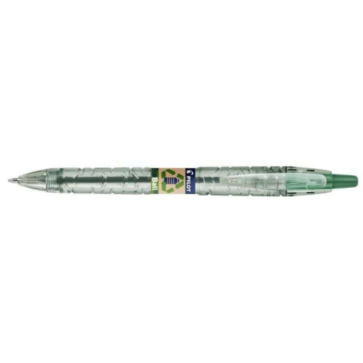 En Pilot estamos convencidos de que todos tenemos un poder: el poder de escribir un capítulo más responsable y más optimista para el futuro de nuestro planeta. Preservar nuestro medio ambiente ha guiado nuestro pensamiento durante mucho tiempo, y todas nuestras acciones nos impulsan a hacerlo mejor con menos. Hacer mejor con menos representa nuestra determinación de limitar nuestro impacto ecológico mientras elevamos nuestros estándares de fabricación, calidad e innovación. En 2006 ya éramos precursores al reciclar botellas de agua de plástico para convertirlas en bolígrafos Pilot B2P. En 2021, iremos más allá en la lógica ?De la botella al bolígrafo? y, por primera vez en el mundo, nuestra gama B2P incluirá, como parte de su composición, residuos plásticos recuperados de las playas. Para recuperar estos residuos, colaboramos con Terracycle, líder mundial en reciclaje. Además, la gama se amplía con la B2P Ecoball, fabricada con un 86,64 %* de botellas de plástico recicladas, de las cuales un 2,5 %** son plásticos reciclados del océano. Este bolígrafo retráctil y recargable ofrece una gran comodidad de escritura con una tinta que fluye suavemente y está disponible en negro, azul, rojo y verde. Un efectivo, divertido, y muy innovadora de participar en la lucha contra la contaminación del mar. Juntos, podemos marcar la diferencia y ayudar a salvar los recursos de nuestro planeta. Ahora estamos compensando las emisiones de CO2 de todos los bolígrafos fabricados en nuestra fábrica europea con sede en Francia (74) apoyando y financiando el proyecto banco de plástico de océanos limpios propuesto por Climate Partner. ¡Un pequeño gesto puede marcar una diferencia significativa en nuestra lucha contra el cambio climático! *Material reciclado principalmente de botellas de plástico (excluyendo piezas reemplazables) ** Material plástico rígido recuperado del océano, playas, ríos, lagos, riberas y cursos de agua. Caracteristicas: -Punta retráctil: un bolígrafo listo en un clic, ¡no más gorras perdidas! -Fabricado con un 86,64 %* de plástico reciclado (excluyendo consumibles), para reducir nuestro impacto en el medio ambiente. -Bola de carburo de tungsteno confiable y resistente combinada con tinta avanzada a base de aceite que brinda una experiencia de escritura suave y fluida. -Producto recargable más económico y respetuoso con el medio ambiente. Especificaciones: -Ancho de escritura: 0,27 mm -Recargable : Sí -Tamaño de la punta en mm: 1,00 mm -Color de tinta : Verde