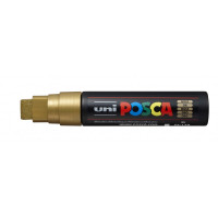 Uni Posca marcador de pintura base al agua -PC-17K Oro15,0mm Características: -Punta de poliéster biselada -Ancho de trazo de 15,0 mm Línea muy gruesa -Cuerpo de plástico -Marcador de pintura no permanente. Tinta pigmentada base al agua. Pinta sobre cualquier superficie y es muy resistente a la luz, es inodoro, las manchas se pueden lavar con agua, desapareciendo inmediatamente, ideal para cartelería, decoración, escaparatismo, posters, etc. -NO ES TÓXICO