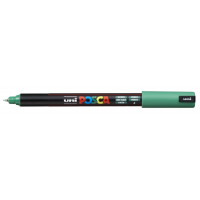 Uni Posca marcador de pintura base al agua -PC-1MR Verde 0,7mm Características: -Punta tipo roller de fibra. -Ancho de trazo 0,7 mm Línea extrafina. -Cuerpo de plástico. -Tinta pigmentada base al agua con óxido de titanio opaco. -Marcador de pintura no permanente que pinta sobre cualquier superficie y es muy resistente a la luz, es inodoro, las manchas se pueden lavar con agua, desapareciendo inmediatamente, ideal para cartelería, decoración, escaparatismo, posters, etc. -NO ES TÓXICO.
