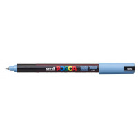 Uni Posca marcador de pintura base al agua -PC-1MR Azul glaciar 0,7mm Características: -Punta tipo roller de fibra. -Ancho de trazo 0,7 mm Línea extrafina. -Cuerpo de plástico. -Tinta pigmentada base al agua con óxido de titanio opaco. -Marcador de pintura no permanente que pinta sobre cualquier superficie y es muy resistente a la luz, es inodoro, las manchas se pueden lavar con agua, desapareciendo inmediatamente, ideal para cartelería, decoración, escaparatismo, posters, etc. -NO ES TÓXICO.