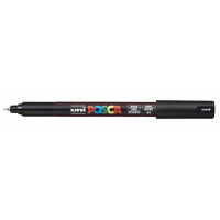 Uni Posca marcador de pintura base al agua -PC-1MR Negro 0,7mm Características: -Punta tipo roller de fibra. -Ancho de trazo 0,7 mm Línea extrafina. -Cuerpo de plástico. -Tinta pigmentada base al agua con óxido de titanio opaco. -Marcador de pintura no permanente que pinta sobre cualquier superficie y es muy resistente a la luz, es inodoro, las manchas se pueden lavar con agua, desapareciendo inmediatamente, ideal para cartelería, decoración, escaparatismo, posters, etc. -NO ES TÓXICO.