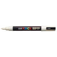 Uni Posca marcador de pintura base al agua -PC-3M Marfil 0,9-1,3mm Características: -Punta de poliéster cónica -Ancho de trazo de 0,9-1,3 mm Línea fina -Cuerpo de plástico -Marcador de pintura no permanente. Tinta pigmentada base al agua. Pinta sobre cualquier superficie y es muy resistente a la luz, es inodoro, las manchas se pueden lavar con agua, desapareciendo inmediatamente, ideal para cartelería, decoración, escaparatismo, posters, etc. -NO ES TÓXICO