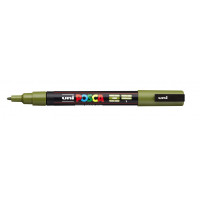 Uni Posca marcador de pintura base al agua -PC-3M Verde kaki 0,9-1,3mm Características: -Punta de poliéster cónica -Ancho de trazo de 0,9-1,3 mm Línea fina -Cuerpo de plástico -Marcador de pintura no permanente. Tinta pigmentada base al agua. Pinta sobre cualquier superficie y es muy resistente a la luz, es inodoro, las manchas se pueden lavar con agua, desapareciendo inmediatamente, ideal para cartelería, decoración, escaparatismo, posters, etc. -NO ES TÓXICO
