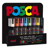 Posca PC-5M Expositor de 36 Marcadores de Pintura Marcador de pintura no permanente. Tinta pigmentada base al agua. Pinta sobre cualquier superficie y es muy resistente a la luz, es inodoro, las manchas se pueden lavar con agua, desapareciendo inmediatamente, ideal para cartelería, decoración, escaparatismo, posters, etc. Características: -Punta de poliéster (forma de bala) 1,8 -2,5 mm -Cuerpo de plástico -No es toxico -Colores: Surtidos -Expositor de 36 Marcadores