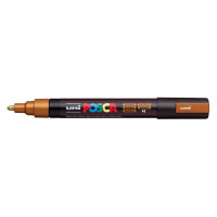 Uni Posca marcador de pintura base al agua -PC-5M Bronce metálico 1,8-2,5mm Características: -Punta de poliéster (forma de bala) -Ancho de trazo de 1,8 -2,5 mm -Cuerpo de plástico -Marcador de pintura no permanente. Tinta pigmentada base al agua. Pinta sobre cualquier superficie y es muy resistente a la luz, es inodoro, las manchas se pueden lavar con agua, desapareciendo inmediatamente, ideal para cartelería, decoración, escaparatismo, posters, etc. -NO ES TÓXICO