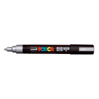 Uni Posca marcador de pintura base al agua -PC-5M Plata 1,8-2,5mm Características: -Punta de poliéster (forma de bala) -Ancho de trazo de 1,8 -2,5 mm -Cuerpo de plástico -Marcador de pintura no permanente. Tinta pigmentada base al agua. Pinta sobre cualquier superficie y es muy resistente a la luz, es inodoro, las manchas se pueden lavar con agua, desapareciendo inmediatamente, ideal para cartelería, decoración, escaparatismo, posters, etc. -NO ES TÓXICO