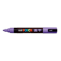 Uni Posca marcador de pintura base al agua -PC-5M Lila 1,8-2,5mm Características: -Punta de poliéster (forma de bala) -Ancho de trazo de 1,8 -2,5 mm -Cuerpo de plástico -Marcador de pintura no permanente. Tinta pigmentada base al agua. Pinta sobre cualquier superficie y es muy resistente a la luz, es inodoro, las manchas se pueden lavar con agua, desapareciendo inmediatamente, ideal para cartelería, decoración, escaparatismo, posters, etc. -NO ES TÓXICO