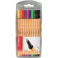 ¡Pon orden al caos de tus apuntes con STABILO point 88! El STABILO point 88 es el punta fina perfecto para crear notas, con una escritura ordenada, subrayando, creando pequeños bocetos y está disponible en 47 colores. Características: -Disponible en 47 brillantes colores, incluyendo 6 colores neón. -Punta de fibra con refuerzo metálico. -Apto para su uso con reglas y plantillas. -No se seca si se deja sin tapón durante largos periodos. -Tapón ventilado. -Ancho de trazo: 0,4 mm. Especificaciones: -Pack de 10 colores surtidos