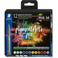Rotuladores de punta de fibra de alta calidad con punta de pincel suave y la innovadora Multi Ink. Caracteristicas: -Tinta múltiple: pigmentos de primera calidad, solidez extrema a la luz, brillo de color excepcional, pintura superior sin manchas una vez que la tinta se ha secado, sin efecto fantasma, sin sangrado, para casi todas las superficies, permanente, resistente al agua. -Solidez a la luz de cada color clasificado de acuerdo con la escala de lana azul y la escala de grises (DIN EN ISO 105-B01, DIN 16525, DIN EN 20105-A02). -Fidelidad del color en una amplia gama de superficies, incluso después de una exposición prolongada a la luz. -Secado rápido en casi todas las superficies. -Prueba de borrado en la mayoría de las superficies. -Tinta de bajo olor a base de agua. -Punta de pincel estable. -Para anchos de línea particularmente variables. -El todoterreno ideal para rotular con pincel, dibujar, sombrear o colorear. -Especialmente adecuado para técnicas mixtas. -El cilindro y la tapa de PP garantizan una larga vida útil. -Carcasa fabricada con un 97 % de plástico reciclado. Especificaciones: -Colores: Nature surtidos -Punta: Pincel -Pack de 12 rotuladores