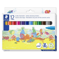 Rotulador escolar para pintar con punta de fibra tamaño Jumbo, tinta base agua, fácilmente lavable en la mayoría de tejidos, tinta con colorantes alimenticios, capuchón ventilado, punta redonda gruesa resistente a la presión, ancho de línea 3,0 mm aprox. Características: -Rotuladores de colores de gran tamaño con punta de 3 mm de ancho resistente a la presión. -Cuerpo de gran tamaño fácil de manejar diseñado especialmente para las manos de los más pequeños. -Capuchón ventilado, según la ISO 11540 y BS 7272-1/2. El cuerpo en PP garantiza una larga vida del producto. -Lavable fácilmente en la mayoría de tejidos. Rotuladores atóxicos gracias a su tinta con base de agua con colorantes alimenticios. -Tintas con colores brillantes, recomendados para uso escolar y para dibujar, pintar y colorear grandes áreas. -El embalaje puede variar.