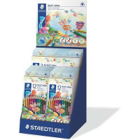 Expositor de sobremesa con: 20 pzas. x 187 Pack de 12 unds, 5 pzas. x 187 Pack de 24 unidades. Lápiz de color de diseño triangular, fabricado con material WOPEX ecológico, con madera certificada PEFC, procedente de bosques de Alemania. Mayor resistencia de la mina. Colores intensos. Superficie suave ergonómica. Diseño a rayas negras y del mismo color que la mina, motivo de estrellas. Características: -Lápices de colores brillantes y variados, de diseño tradicional triangular, óptimos para colorear y dibujar. -Lapiceros ecológicos, con madera con certificación PEFC, procedente de bosques de gestión sostenible. -Fabricados en WOPEX, innovador material formado por grafito, WPC y un diseño especial de rayas y estrellas. -Diseño ergonómico que ofrece una experiencia única de escritura, más cómodos de usar por su alta densidad y mayor peso. -La mina homogénea es especialmente resistente a la rotura y no se astilla cuando se rompe.