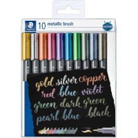 Rotuladores de colores metálicos de alta calidad para escribir y decorar en papel claro y oscuro, así como en cartón. El rotulador ideal para álbumes de recortes y letras a mano, se puede limpiar fácilmente con un paño húmedo. Características: -Rotulador permanente -Punta pincel -Trazo: Entre 1-2mm Especificaciones: -Estuche de 10 Rotuladores