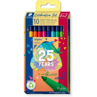 Rotulador de diseño triangular ergonómico para escribir sin cansarse, tinta ANTISECADO: puede permanecer destapado durante días sin secarse, punta de fibra resistente a la presión, tinta base agua, fácilmente lavable en la mayoría de tejidos, capuchón ventilado, cuerpo de polipropileno (PP), ancho de línea 1,0 mm. Estuche de cartón con 10 rotuladores, colores surtidos. Estuche de cartón, con un mínimo del 80% de cartón reciclado. Características: -Rotulador de punta de fibra de diseño triangular ergonómico para una escritura y dibujo fácil y relajada. -Punta estable, resistente a la presión. -Capuchón ventilado, según la ISO 11540 y BS 7272-1/2. -DRY SAFE - puede permanecer destapado durante días sin secarse (Test ISO 554). -Tinta base agua. -Lavable fácilmente en la mayoría de tejidos. -El cuerpo y el capuchón en PP garantizan una larga vida del producto. -Ancho de línea 1.0 mm aprox.