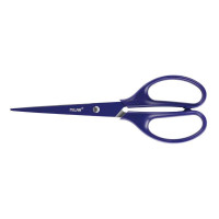 Tijeras de oficina con la hoja del mismo color que la empuñadura. Edición ACID, color azul. Con cuchilla de acero inoxidable resistente acabada en punta, que permite una mayor precisión en el corte. Mango de plástico simétrico, apto también para zurdos. Características: -Cuchilla de Acero Inoxidable -Mango de Plastico Simétrico -Longitud: 17 cm. -Color: Azul Especificaciones: -Blister de 1 ud.