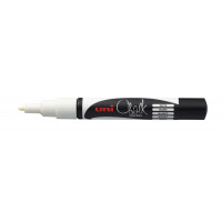 Uni Chalk marcador de tiza liquida -PWE-3MS Blanco 0,7mm Características: -Marcador de tiza líquida con borrado en húmedo -Pinta sobre cualquier superficie y es ideal para pizarras negras, blancas, vidrio,? ya que su tinta resiste a la lluvia y a exteriores pero se borra fácilmente con un trapo húmedo -Ideal para anunciar menús, ofertas? -Cuerpo de plástico reciclado -Punta de poliéster cónica